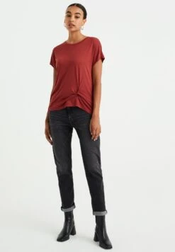 WE FASHION Tapered Fit Met Ceintuur – Pantalon Classique – Brown